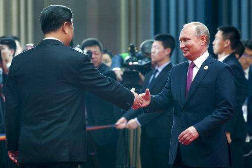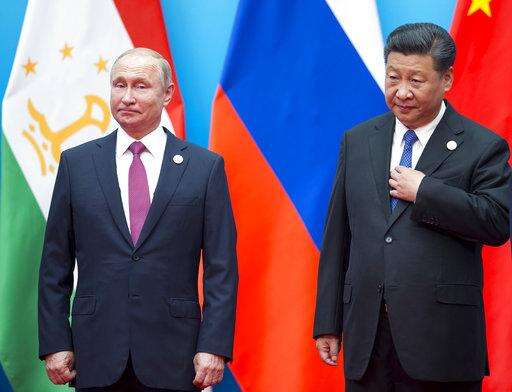 Chinese President Xi Jinping, right, and Russian President Vladimir Putin walk to attend talks at the Shanghai Cooperation Organization (SCO) Summit in Qingdao in eastern China's Shandong Province Sunday, June 10, 2018. (AP Photo/Alexander Zemlianichenko) The Associated Press