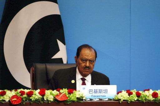 Pakistan President Mamnoon Hussain looks during the signing ceremony for the Shanghai Cooperation Organization (SCO) Summit in Qingdao in eastern China's Shandong Province, Sunday, June 10, 2018. Xi extolled free trade and criticized "selfish, short-sighted" policies during the closely orchestrated gathering, standing in stark contrast with the G-7 summit that ended in disarray over trade tensions. (AP Photo/Dake Kang)