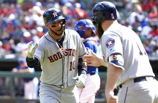 Springer's major league-leading fifth leadoff homer of the season was his third against Texas, this time against struggling left-hander Matt Moore after the previous two were off lefty ace Cole Hamels. Last year's World Series MVP leads the Astros with 14 home runs.