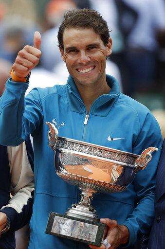 PARIS (AP) - Rafael Nadal's 11th French Open title raised his Grand Slam trophy count to 17, three away from the men's record held by Roger Federer.