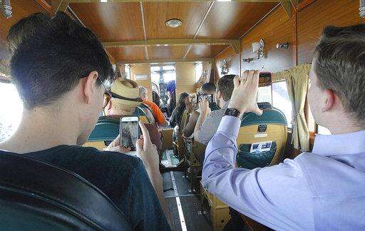In this Thursday, June 14, 2018 photo, members of the media take a ride in a Ford Tri-Motor aircraft at Central Illinois Regional Airport in Bloomington, Ill. The flights are sponsored by the Experimental Aircraft Association and several local Twin Cities business. The flights are available to the public and scheduled to be flown through Sunday. The plane first flew in 1928. (David Proeber /The Pantagraph via AP) The Associated Press
