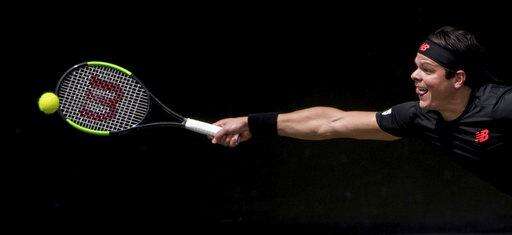 Milos Raonic returns the ball to Tomas Berdych in their quarterfinal match during the ATP Mercedes Cup in Stuttgart, Friday June 15, 2018. (Marijan Murat/dpa via AP) The Associated Press