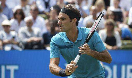 Roger Federer plays against Guido Pella in their quarterfinal tennis match during the ATP Mercedes Cup in Stuttgart, Friday June 15, 2018. (Marijan Murat/dpa via AP) The Associated Press