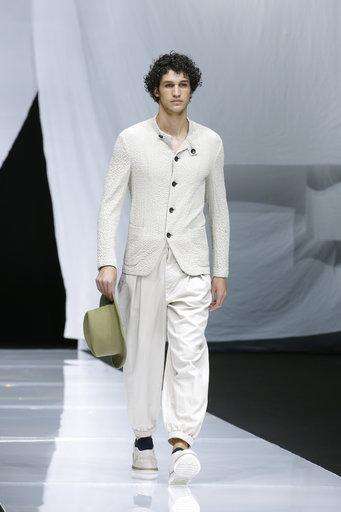 While Armani showed what may have been the only tie on Milan runways this season - and just one - he also sent well-toned models down the runway bare-chested beneath the jackets.