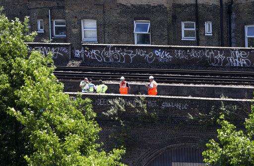 Britain's Press Association, citing rail industry sources, reported that spray cans had been found nearby and that area was popular with graffiti artists. Officers took photographs of graffiti as they investigated, but said it was too early to comment on the reasons why the three men were there.