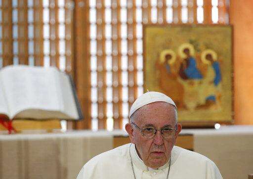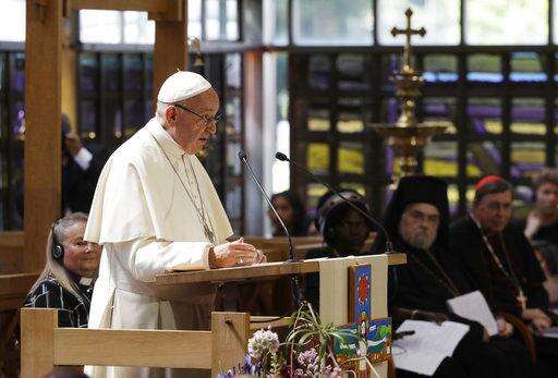 Pope Francis takes part in an ecumenical prayer at the World Council of Churches (WCC), on Thursday, June 21, 2018, in Geneva, Switzerland. (Denis Balibouse/pool photo via AP) The Associated Press
