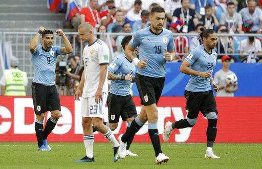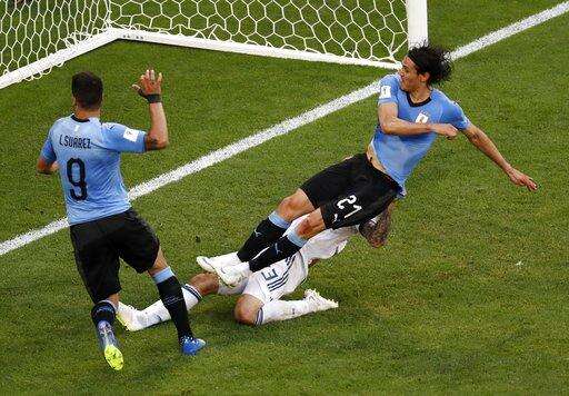 Against Russia on Monday, Suarez scored from a free kick with a low shot that sailed past Russia's wall and into the right corner. Cavani pounced on a loose ball after the goalkeeper parried it from a header by Diego Godin. Cavani poked it home for Uruguay's third goal.