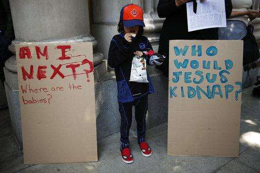 Protesters also are carrying signs reading: "Free the children!" and "stop caging families."