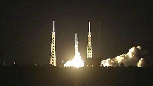 The used Falcon rocket blasted off before dawn, hauling nearly 6,000 pounds (2,700 kilograms) of cargo including the spherical AI bot named Cimon, genetically identical mice and super-caffeinated coffee for the crew of the International Space Station.