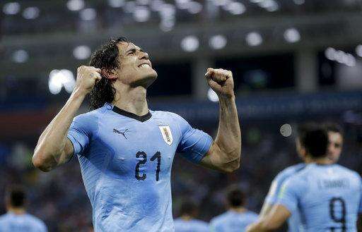 SOCHI, Russia (AP) - Edinson Cavani upstaged Cristiano Ronaldo, first with his head and then with his right foot, and sent Uruguay to the World Cup quarterfinals.