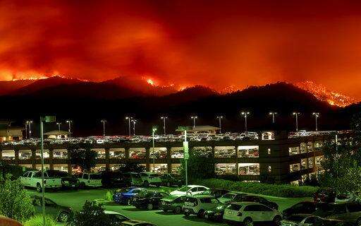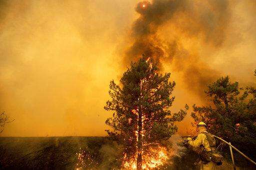 GUINDA, Calif. (AP) - Evacuations were ordered as dry, hot winds fueled a wildfire burning out of control Sunday in rural Northern California, sending a stream of smoke some 75 miles (120 kilometers) south into the San Francisco Bay Area.