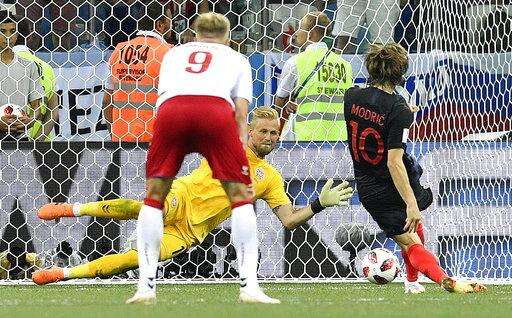 MOSCOW (AP) - Penalties. Love them or hate them, they dominated Sunday's knockout matches at the World Cup, and not just because both games ended in shootouts. Russia might not have been able to hang in with Spain were it not for Gerard Pique flinging his arm at a header in the area, drawing a penalty that Artem Dzyuba converted to make it 1-1. Luka Modric has had a masterful tournament for Croatia but was bested by Danish 'keeper Kasper Schmeichel in the dying moments of injury time when he could have won it from the spot.
