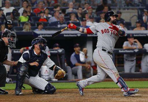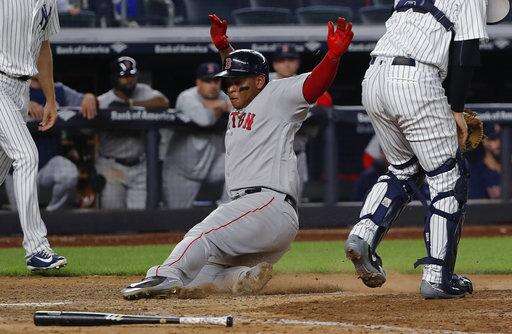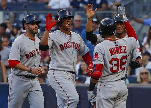Devers had a career-best five hits. He nearly socked another homer in the seventh, but right fielder Aaron Judge reached over the wall and knocked Devers' shot back into play with his glove. Devers ended up with a double following a video review.