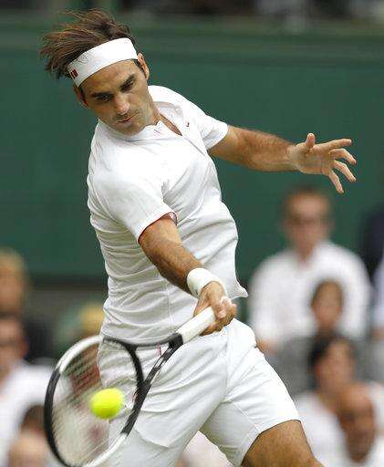 Switzerland's Roger Federer returns the ball to Slovakia's Lukas Lacko during their men's singles match, on the third day of the Wimbledon Tennis Championships in London, Wednesday July 4, 2018. (AP Photo/Kirsty Wigglesworth) The Associated Press