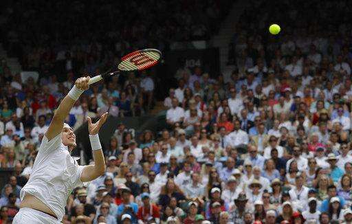 Slovakia's Lukas Lacko returns the ball to Switzerland's Roger Federer during their men's singles match, on the third day of the Wimbledon Tennis Championships in London, Wednesday July 4, 2018. (AP Photo/Kirsty Wigglesworth) The Associated Press