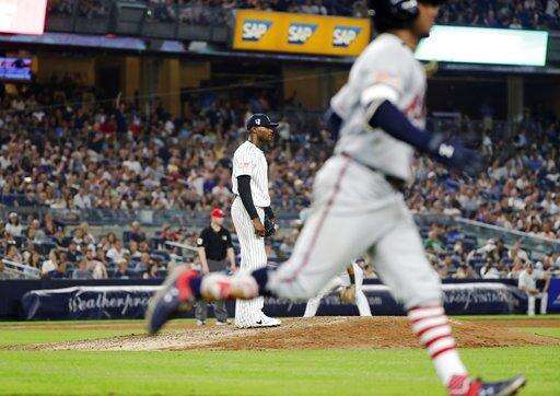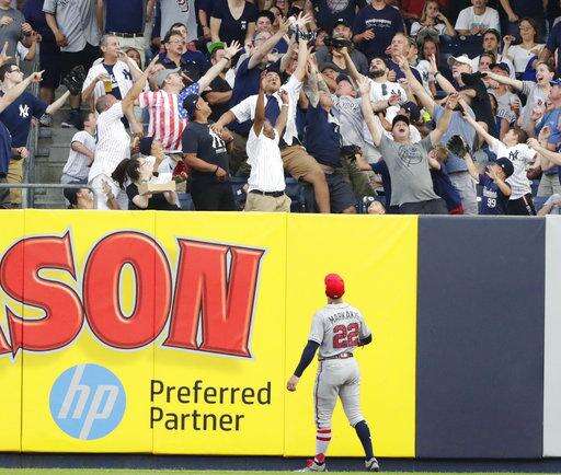 A night after Atlanta rookie Ronald Acuna Jr. barely cleared the wall to give Atlanta an 11-inning victory, the Yankees took advantage of their cozy stadium.
