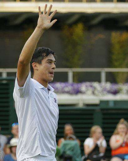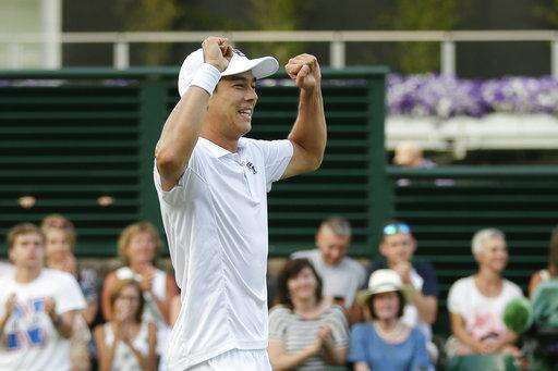 Mackenzie McDonald of the US, celebrates defeating Guido Pella of Argentina, in their men's singles match on the fifth day at the Wimbledon Tennis Championships in London, Friday July 6, 2018. (AP Photo/Tim Ireland) The Associated Press