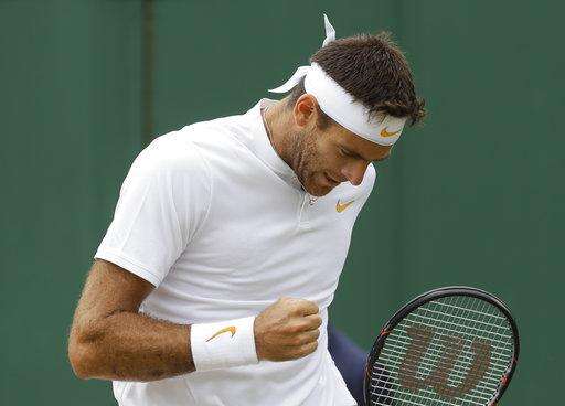 Juan Martin del Potro advanced to the Wimbledon quarterfinals for the first time since 2013 by beating Gilles Simon 7-6 (1), 7-6 (5), 5-7, 7-6 (5).