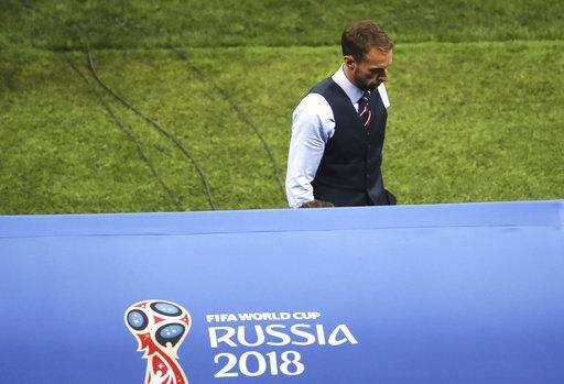 England head coach Gareth Southgate leaves the field at the end of the semifinal match between Croatia and England at the 2018 soccer World Cup in the Luzhniki Stadium in Moscow, Russia, Wednesday, July 11, 2018. (AP Photo/Thanassis Stavrakis) The Associated Press