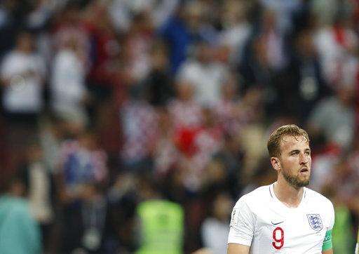 England's Harry Kane reacts at the end of the semifinal match between Croatia and England at the 2018 soccer World Cup in the Luzhniki Stadium in Moscow, Russia, Wednesday, July 11, 2018. (AP Photo/Rebecca Blackwell) The Associated Press