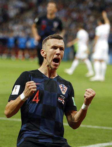 Croatia's Ivan Perisic celebrates after scoring his side's first goal during the semifinal match between Croatia and England at the 2018 soccer World Cup in the Luzhniki Stadium in Moscow, Russia, Wednesday, July 11, 2018. (AP Photo/Alastair Grant) The Associated Press