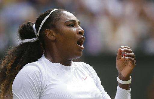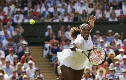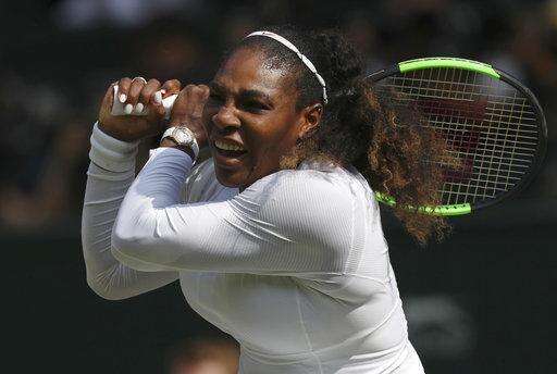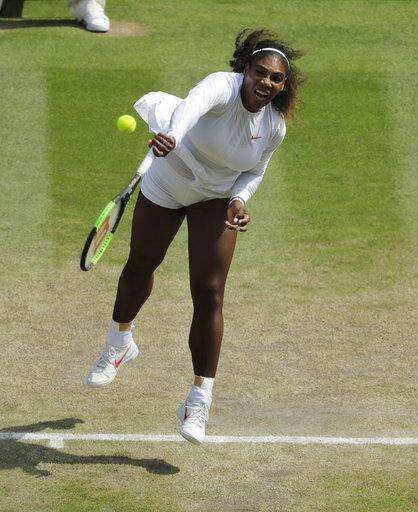 Serena Williams of the United States returns the ball to Germany's Julia Gorges during their women's singles semifinals match at the Wimbledon Tennis Championships, in London, Thursday July 12, 2018.(AP Photo/Tim Ireland) The Associated Press