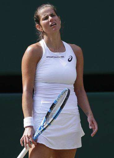 Germany's Julia Gorges is dejected after losing a point during her women's singles semifinals match against Serena Williams of the United States at the Wimbledon Tennis Championships, in London, Thursday July 12, 2018.(AP Photo/Kirsty Wigglesworth) The Associated Press