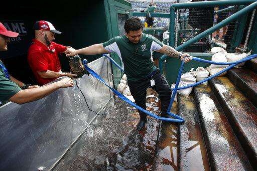 With the storms over, there was not much concern about delaying or postponing the game as much as how the water on the field could affect play. Nearby Ronald Reagan Washington National Airport took more than 2 inches of rain, and there was standing water in the NL dugout.