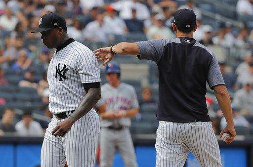 NEW YORK (AP) - Aroldis Chapman had flamed out, throwing three of 19 pitches for strikes and enabling the Mets to cut a four-run, ninth-inning deficit in half.