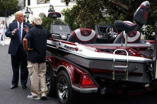 WASHINGTON (AP) - Checking out a speedboat, a fighter jet and a giant industrial magnet parked on the White House driveway, President Donald Trump showcased an array of "Made in America" products Monday as his administration pushes back aggressively against critics who say his punishing tariffs on imported goods threaten to harm the U.S. economy.