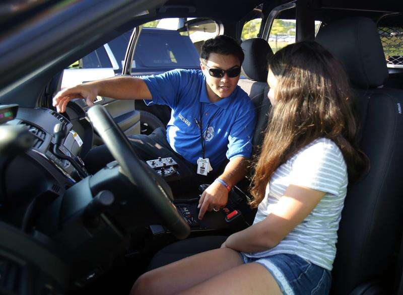 A Wauconda Explorer commander shows a young resident the inside of a police car during Wauconda's National Night Out celebration last year. This year's event will be from 5:30-8:30 p.m. Aug. 7 in Cook Park. Steve Lundy/slundy@dailyherald.com, 2017