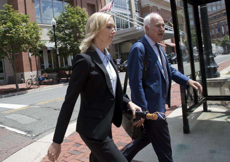 Paul Manafort's former bookkeeper Heather Washkuhn, left, walks to the Alexandria Federal Courthouse in Alexandria, Va., Thursday, Aug. 2, 2018, to testify at the trial of President Donald Trump's former campaign chairman's tax evasion and bank fraud trial. Washkuhn testified that Manafort kept her in the dark about the foreign bank accounts he was using to buy millions in luxury items and personal expenses. (AP Photo/Manuel Balce Ceneta)