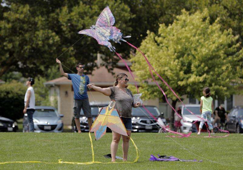 People fly their kites during the Elmhurst Kite Fest at Berens Park Saturday.