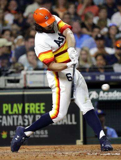 The Astros had trouble stringing hits together until Marwin Gonzalez and Tyler White hit consecutive singles with no outs in the fifth inning. Martin Maldonado then reached on a fielder's choice that left Gonzalez out at home.