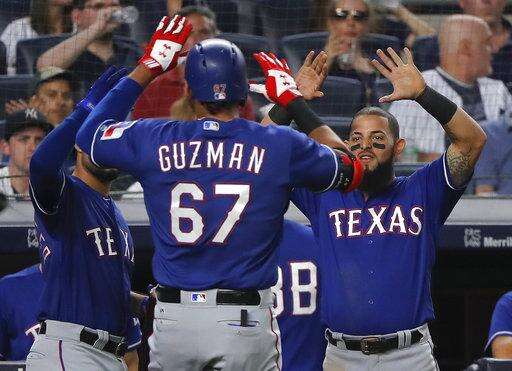 Guzman 1st rookie to hit 3 HRs in game vs Yanks, Texas wins
