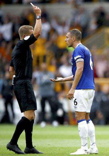 Everton's plans were derailed by Phil Jagielka being sent off in the 40th for a high-studs challenge on Diogo Jota's ankle.