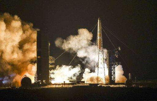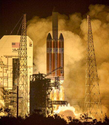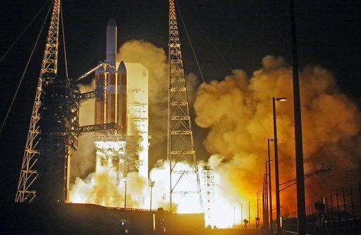 A Delta IV rocket, carrying the Parker Solar Probe, lifts off from launch complex 37 at the Kennedy Space Center, Sunday, Aug. 12, 2018, in Cape Canaveral, Fla. The Parker Solar Probe will venture closer to the Sun than any other spacecraft and is protected by a first-of-its-kind heat shield and other innovative technologies that will provide unprecedented information about the Sun. (AP Photo/John Raoux)
