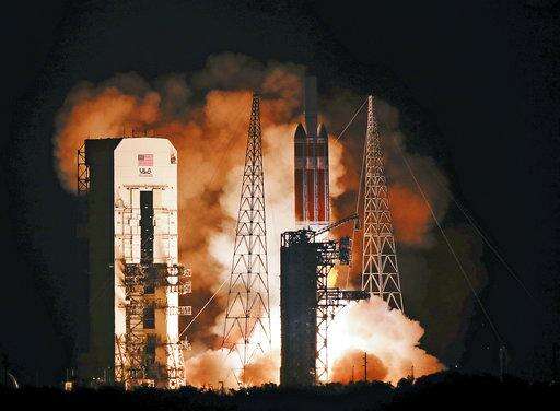A United Launch Alliance Delta IV Heavy lifts off from Complex 37 at Cape Canaveral Air Force Station Sunday, Aug. 12, 2018. Aboard the rocket is the Parker Solar Probe on a mission to the Sun. (Craig Bailey/Florida Today via AP)