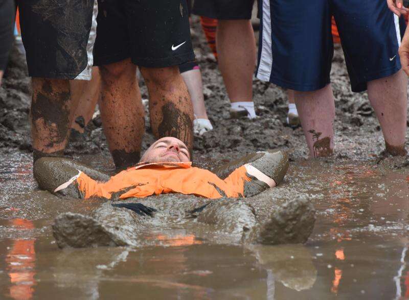 A man lays in the mud at the Muck Fest 5K Mud Run at the Lake County Fairgrounds in Grayslake Saturday morning. John Starks/jstarks@dailyherald.com