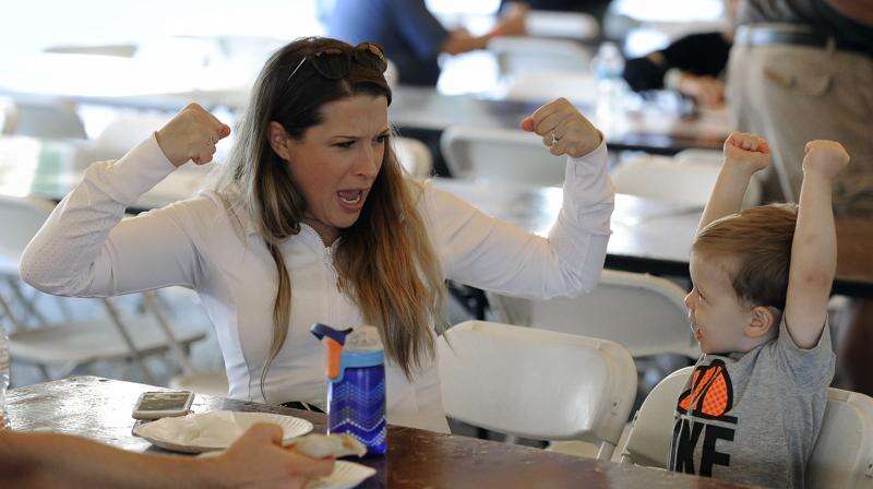 Buffalo Grove Days brings out the thrills in little kids as well as parents like Katie Mowery of Buffalo Grove and her son Max, 2, who clown around in the bingo tent as day one of Buffalo Grove Days kicks off. Mark Welsh/mwelsh@dailyherald.com