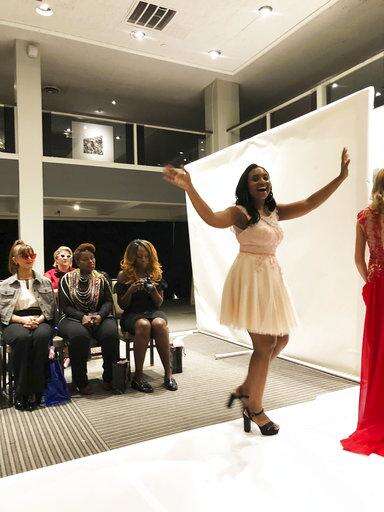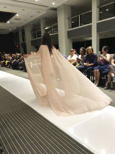 She walked the runway with models young and old, including one in a wheelchair, Tae McKenzie of Charlotte, North Carolina, and a young girl who also has Down syndrome. White's 43 looks were shown like a rainbow with glimmering beaded embellishments on some in red, pink, gold, white, black and rose. Some pageant queens walked the runway, too, with a few in the audience, their sashes and crowns in place.