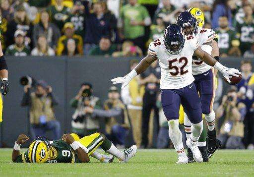 It didn't take long for new Bears linebacker Khalil Mack to get pressure against the Packers.