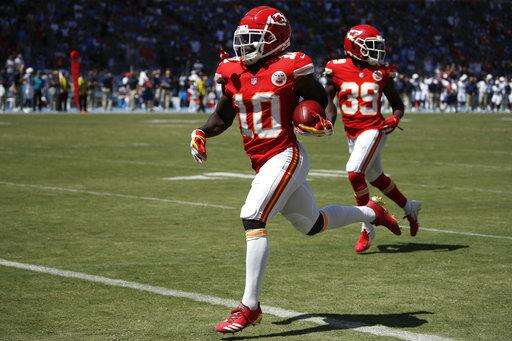 Tyreek Hill has scored three touchdowns for the Kansas City Chiefs.