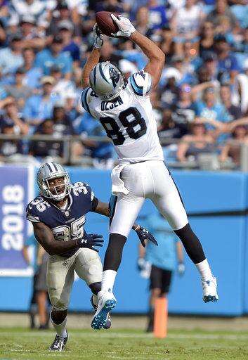 Panthers three-time tight end Greg Olsen (back) appears to be ready for Carolina's game with the Dallas Cowboys.