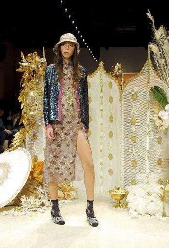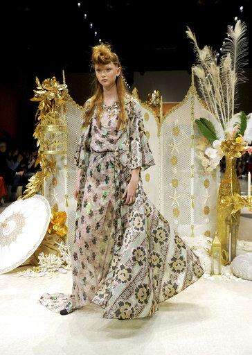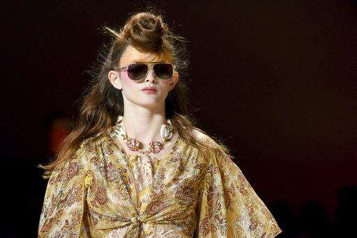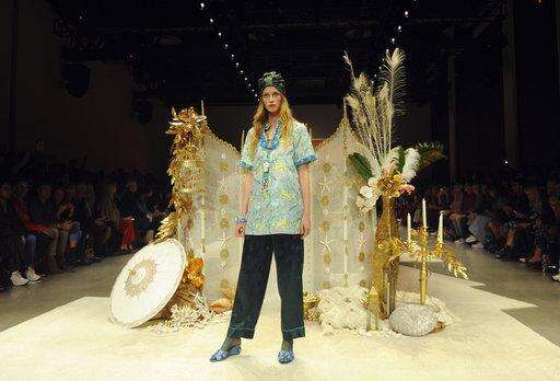 A model walks the runway at the Anna Sui spring 2019 show during New York Fashion Week, Monday, Sept. 10, 2018. (AP Photo/Diane Bondareff)