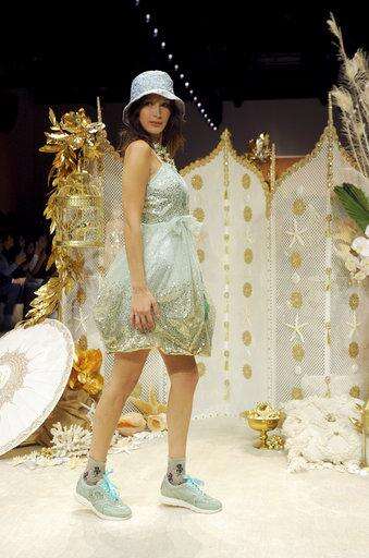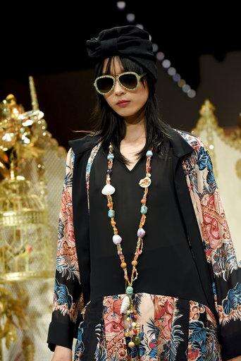 Sofia Coppola walks through a bazaar set up on the runway before the Anna Sui spring 2019 collection is shown at New York Fashion Week, Monday, Sept. 10, 2018. (AP Photo/Diane Bondareff)