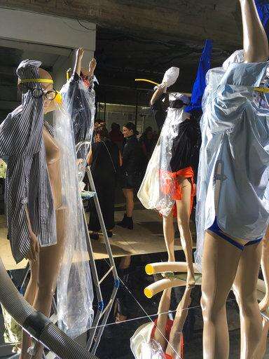This season, the duo also collaborated with Berlin-based sculptor Isa Genzken - "one of our idols," Hernandez said - for inspiration. When guests entered their show in downtown Manhattan, they were confronted with a large installation by the German artist of mannequins dressed in bits of Proenza garments.