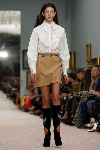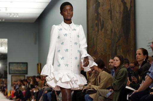 The Carolina Herrera spring 2019 collection is modeled during Fashion Week in New York, Monday, Sept. 10, 2018. (AP Photo/Richard Drew)