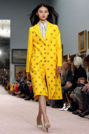 NEW YORK (AP) - In the first show since creative director Wes Gordon took the reins on Carolina Herrera's line, he brought bright colors, patterns, bold prints and voluminous evening gowns to the runway at New York Fashion Week.