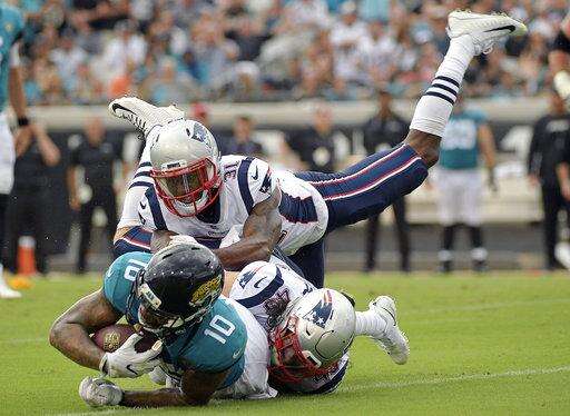 Westbrook's catch-and-run put the Jaguars (2-0) ahead 31-13, allowing them to start celebrating their second victory in franchise history against New England (1-1) and first in the regular season. They hadn't beaten the Pats since January 1999.